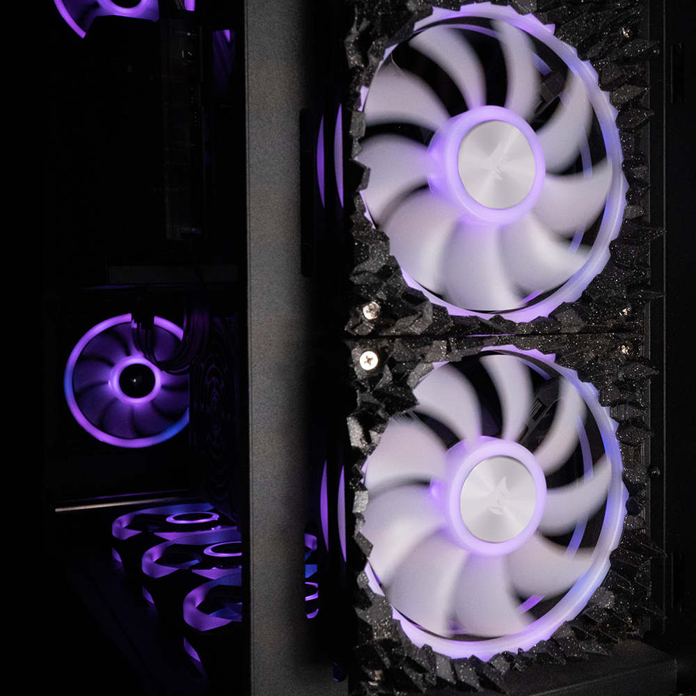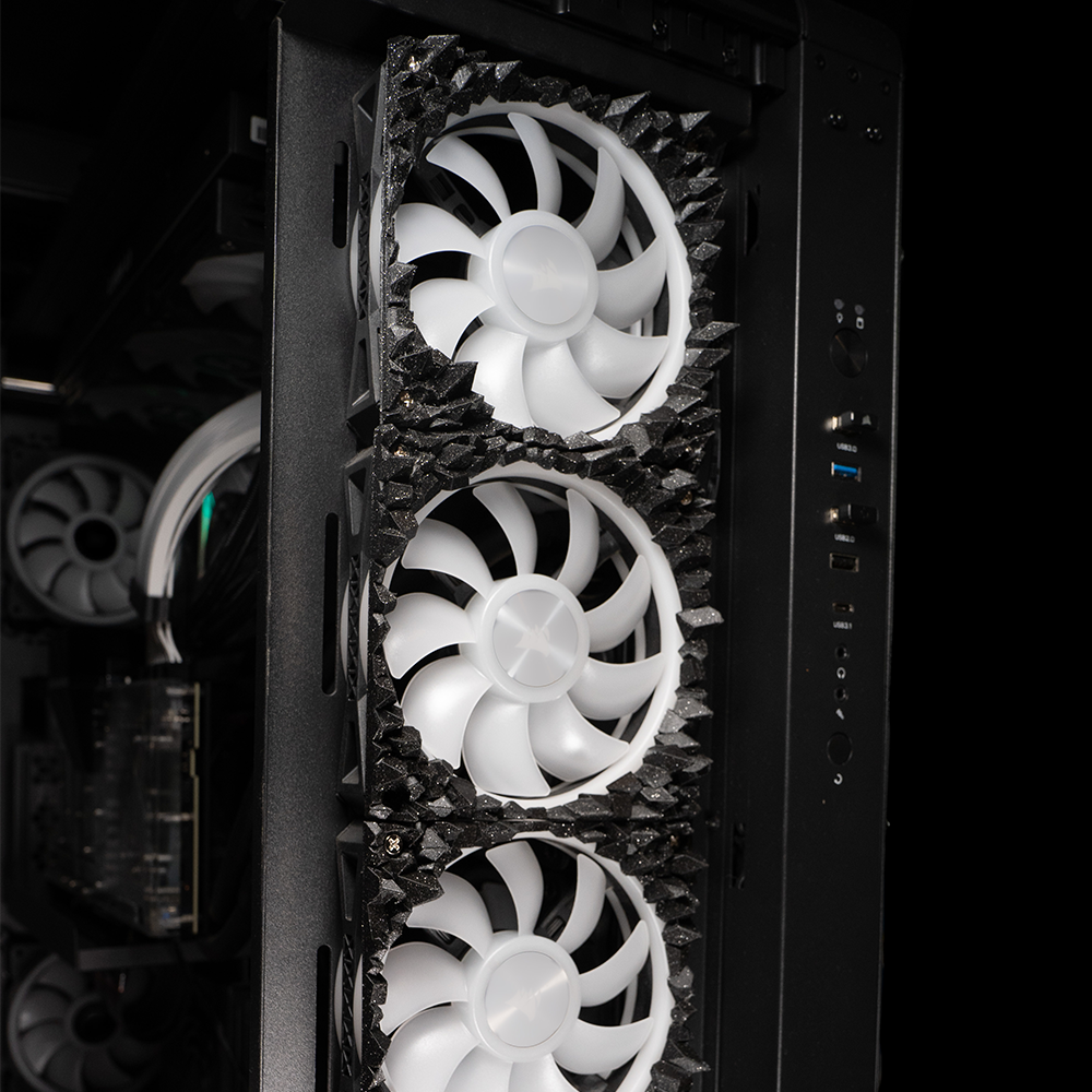 The Dark Matter V2 is an evolution of our first Dark Matter Fan Shroud. The V2 features larger spikes, optional recesses on the back, and an overall improved look. The spikes are larger and more jagged (careful, they may be sharp), and fill more space inside of your pc. This shroud pairs nicely with the original shroud. We recommend using this shroud in more open areas, and using the V1 in areas where there is not as much room.