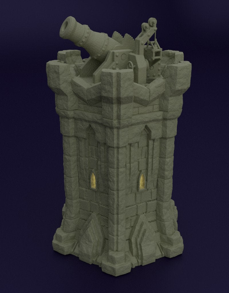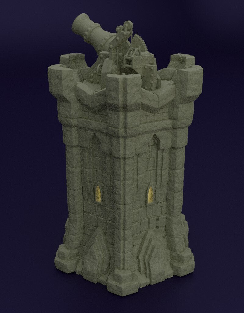 Dwarf Bombardment Tower Terrain for Dungeons and Dragons, DnD Dwarven Terrain Tower, Dwarven Cannon Tower