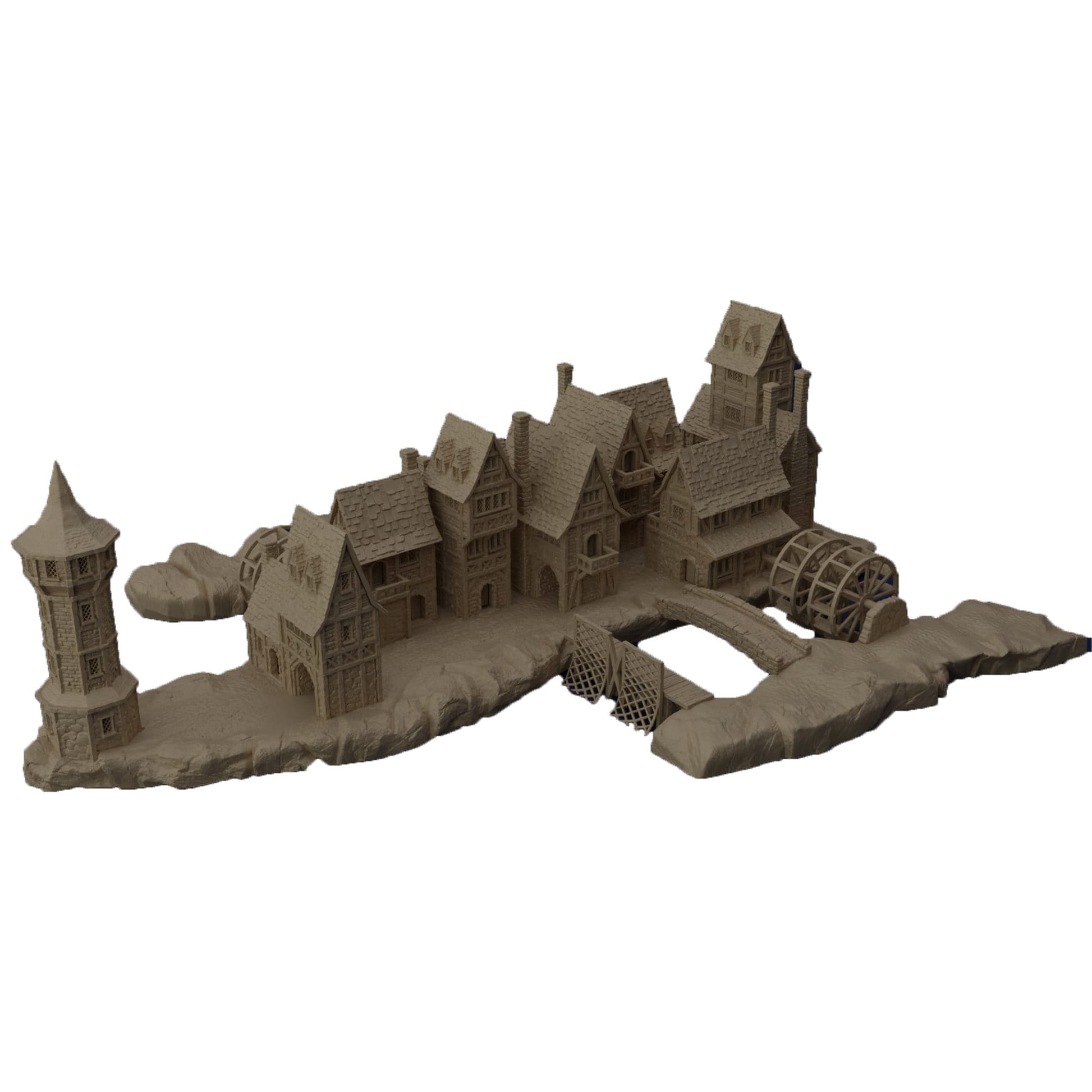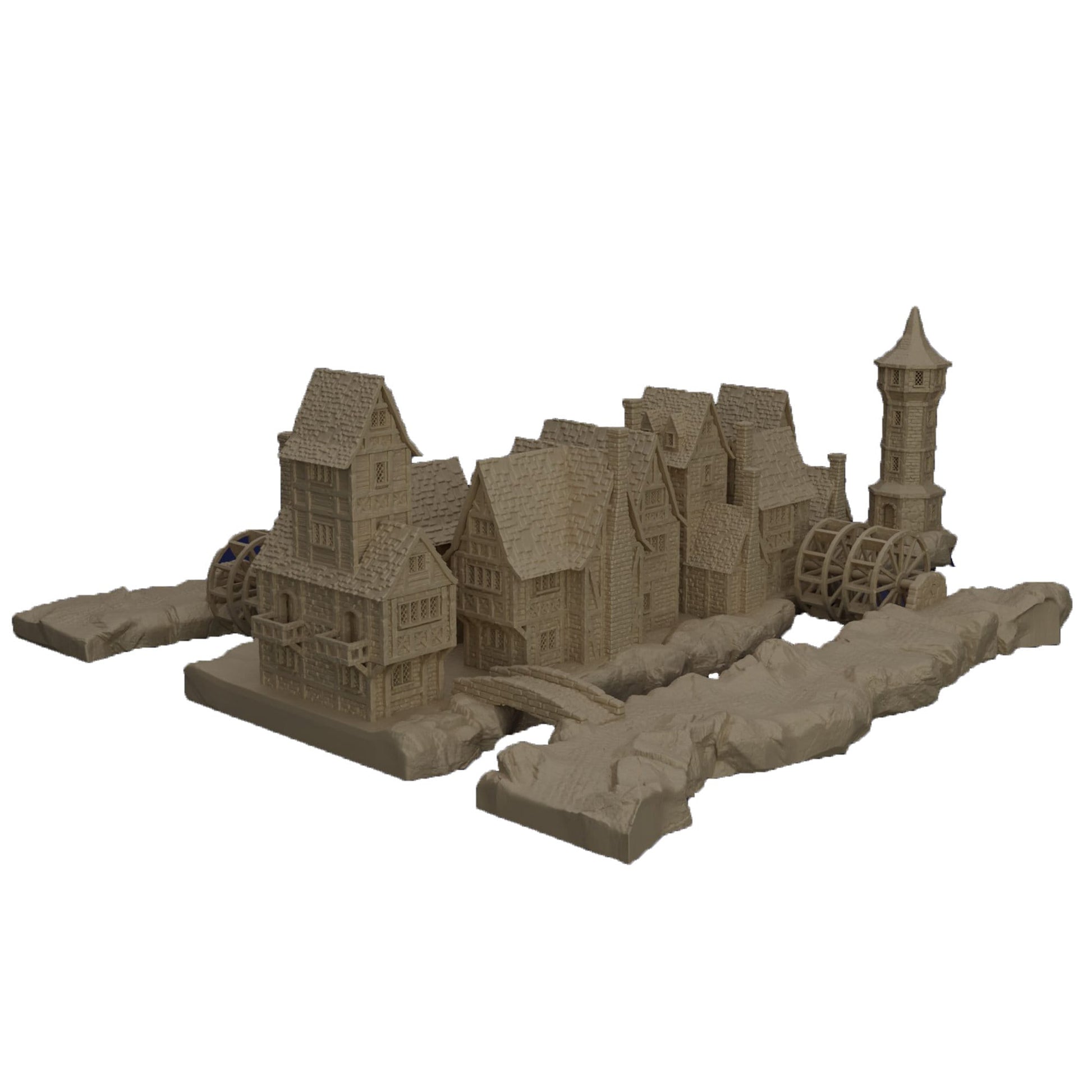 River Village Large DnD Terrain, Medieval River Village Terrain for DnD