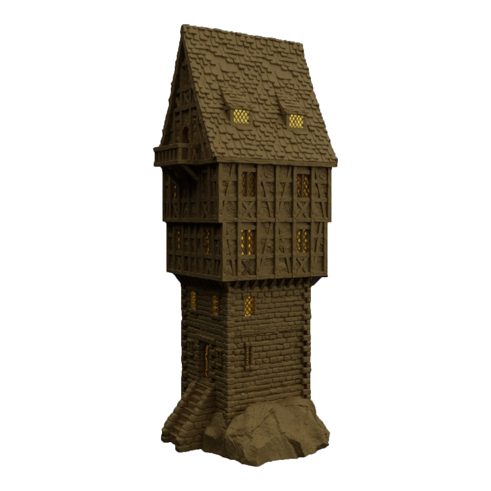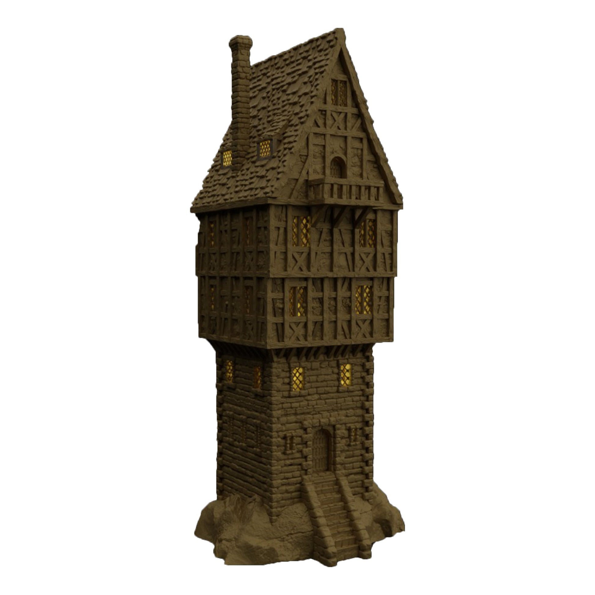 A detailed and intricate medieval tower house. The seven levels on this terrain piece make it a great standalone option. This tower house also pairs well with the other "medieval" offerings in our shop.